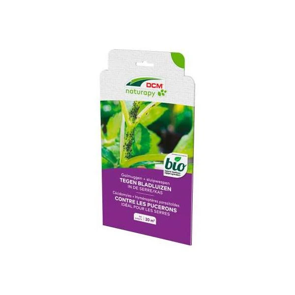 DCM Aphidi-Guard bevat poppen van sluipwespen en galmuggen.Dankzij het gebruik van 2 verschillende organismen worden de krachten gebundeld. Er ontstaat een unike mix voor een optimale bestrijding van bladluizen. Sluipwespen hebben een grote mobiliteit en een uitstekend zoekgedrag. Hierdoor vullen ze perfect de vraatzuchtige larven van de galmug aan.