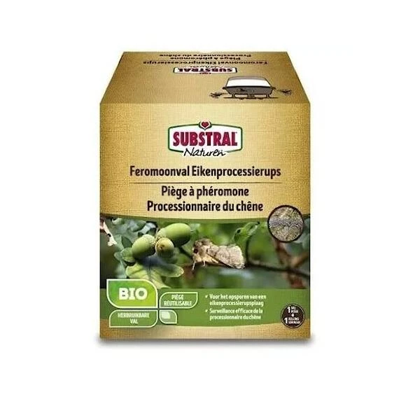 De nieuwe Eikenprocessiemotval van Substral Naturen is een lokmiddel op basis van feromonen, een seksueel lok-middel dat ervoor zorgt dat de mannelijke motten aangetrokken worden, in de eikenprocessierupsval terecht komen, zo niet meer paren waardoor het aantal eitjes beperkt wordt.